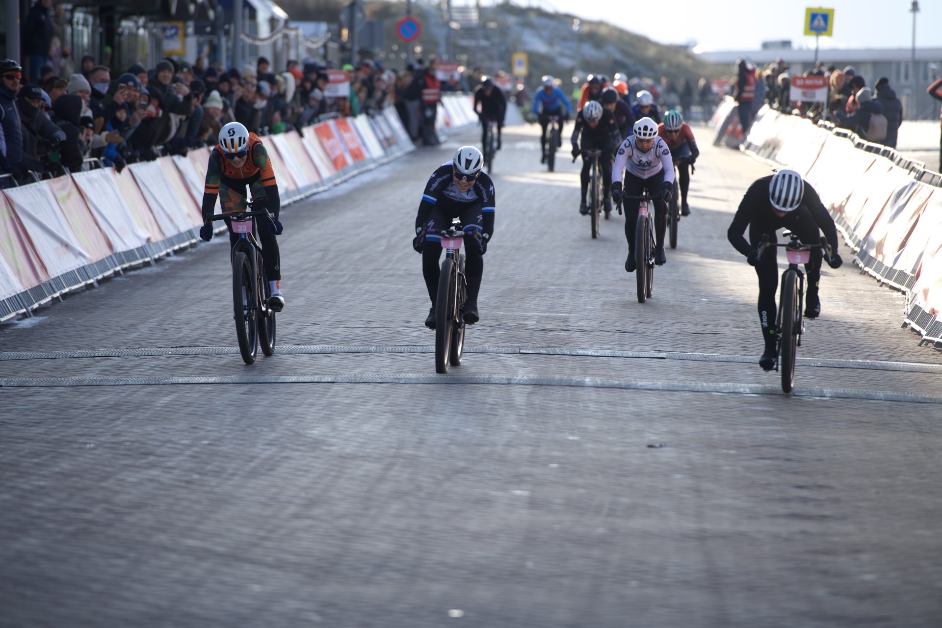 De beslissing viel bij de laatste strandafgang in Castricum aan Zee. Jonas Rickaert, tot dan toe ijzersterk ogend, kwam ten val en verloor de aansluiting. Pepijn Veenings profiteerde optimaal: hij sprong met fiets en al over de strobalen, nam direct een strakke tijdrithouding aan en sloeg een beslissend gat. Teamgenoot Rick van Breda controleerde daarachter het tempo, waardoor Veenings onbedreigd solo de boulevard van Egmond aan Zee op reed. De renner van Team Beukers finishte in 00:59:59.